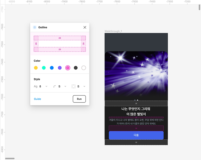 - Auto layout을 설정한 프레임을 선택하고, Run을 누르면 끝!
