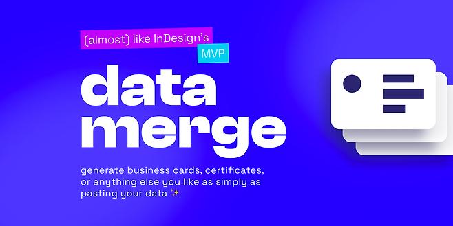 InDesign의 Data Merge를 알고 계신다면 반가울 플러그인이죠! 하나하나 데이터를 붙여넣지 않고, 템플릿 하나에 일괄 반영할 수 있도록 해줍니다. 명함이나 인증서같이 동일한 템플릿에 실제 데이터를 여러개 넣어야하는 작업을 할 때 효율을 어마어마하게 올릴 수 있어요.