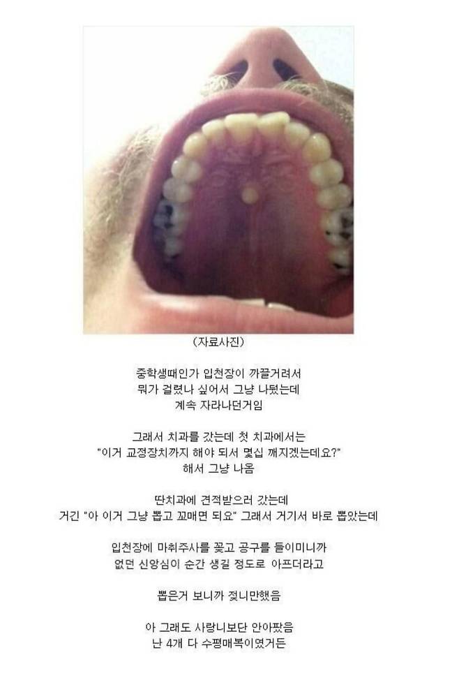 중학생때인가 입천장이 까끌거려서 뭐가 걸렸나 싶어서