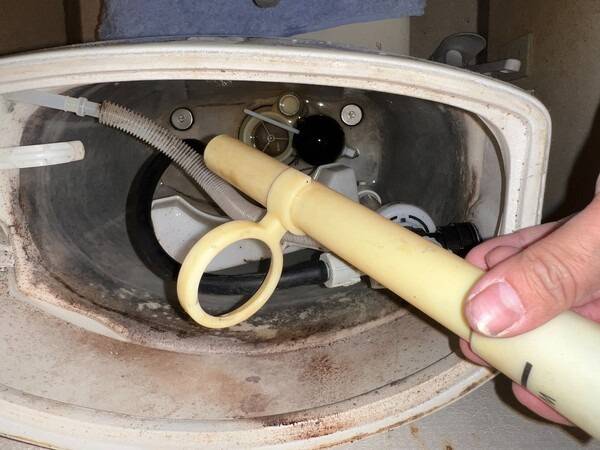 오버플로우 관을 확인하고 이물질, 슬러지, 녹 등을 깨끗이 닦아줍니다.
