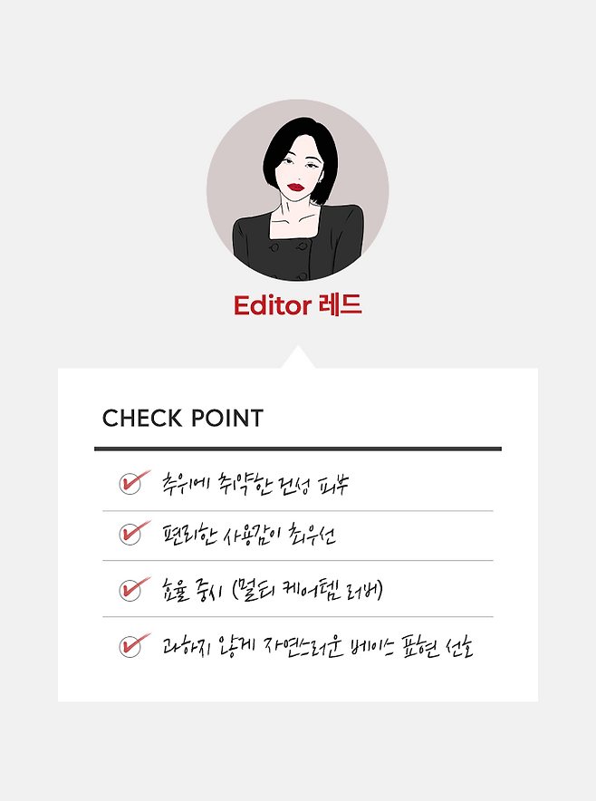 추워진 날씨 탓에 피부 수분을 가장 중요하게 생각하는 요즘 AHC의 톤업 선크림은 촉촉하게 피부에 밀착되어 시간이 지나도 피부가 당기거나 건조하지 않게 수분감을 유지해 주었는데요. 속부터 올라오는 수분광이 더해져 방금 관리받고 나온 피부처럼 고급스러워 보이기까지 하더라구요. 게다가 잡티, 다크서클을 자연스럽게 커버해 주어서 파데프리용으로도 제격! 강력한 자외선 차단까지 가능해서 긴박한 출근 준비 시간을 단축시켜줄 베이스 대체품으로 손색이 없는 제품이에요.