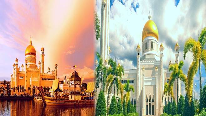 이 웅장한 모스크는 이탈리아 대리석과 금 등 고급 자재로 지어져 어디서든 눈부시게 빛나며, 그 화려함이 브루나이 수도 반다르세리베가완 시내 어디서든 독특한 지표가 된다.