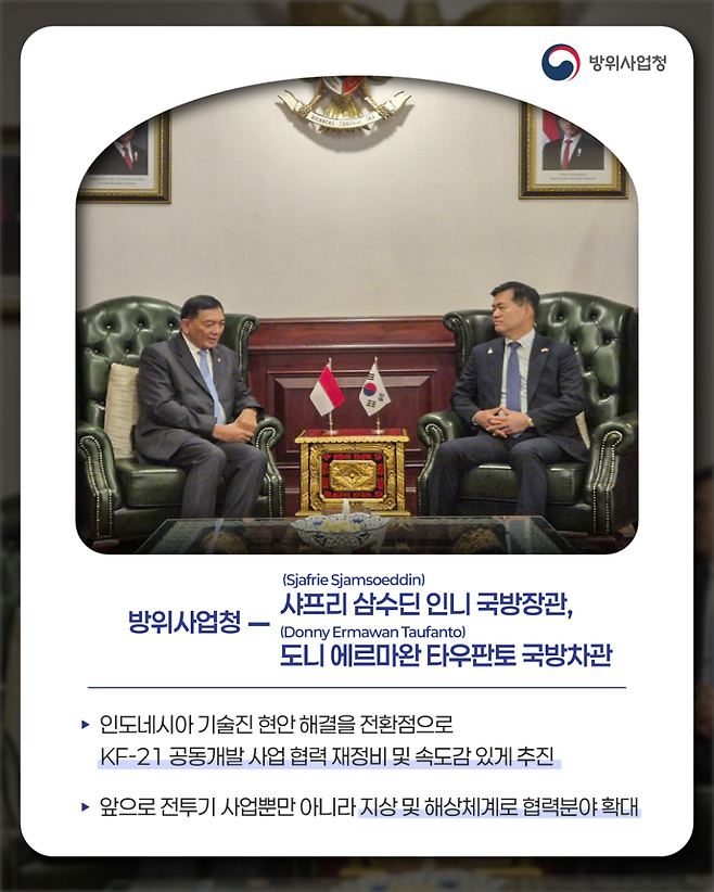 한국은 인도네시아와의 협정에 석종건 방위사업청장이 참석해 협정에 서명했지만, 이는 인도네시아가 기존 KF-21 프로젝트에서 발생한 재정 문제를 튀르키예 칸 도입으로 어물쩍 넘어가려는 시도로 보입니다.