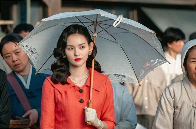 공개된 스틸 속 김윤혜는 매란 최고의 히로인 답게 매혹적인 자태를 뽐낸다. 수수한 차림새의 시장 상인들 사이에서 새빨간 원피스와 레드립, 레이스 양산과 실크 장갑으로 멋을 낸 김윤혜의 모습이 돋보인다.
