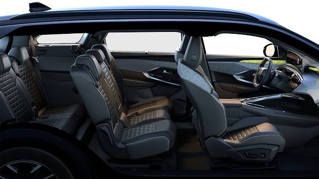 이번 5008은 전기차와 공유하는 'STLA 미디엄 플랫폼'을 기반으로 제작되었다. 덕분에 휠베이스가 길어져 승차감이 개선되었고 시트 착좌감 또한 만족스럽다. 그러나 2열 시트의 방석 길이가 다소 짧고, 리클라이닝 각도 조절 범위가 크지 않아 시각적으로 큰 차이를 느끼기 어렵다. 팔걸이는 매우 작고 귀여운 사이즈로 제작되었다.