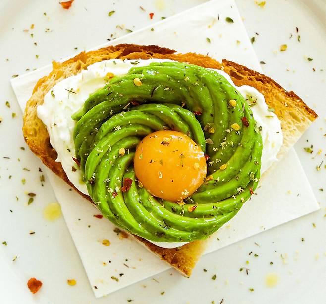 아보카도를 으깬 후 올리브오일, 소금, 후추, 레몬즙을 섞어 준비합니다. 레몬즙을 더하면 풍미가 더욱 좋아질 뿐만 아니라 갈변도 막을 수 있습니다. 달걀은 반숙 프라이로 조리하는 것을 추천합니다. 7분 이내로 익혀야 단백질 구조가 변형되지 않아 흡수율이 더 높아집니다. 마지막으로 바삭하게 구운 토스트 위에 아보카도와 반숙 프라이를 올려주면 완성됩니다.