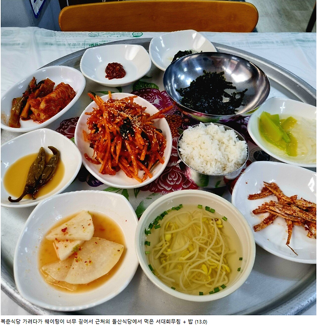30년 넘은 백반집으로, 제육볶음과 꽃게탕, 간장게장, 양념게장, 서대회무침 등 다양한 반찬을 제공합니다. 가성비 좋은 식당으로 현지인들에게 인기입니다.