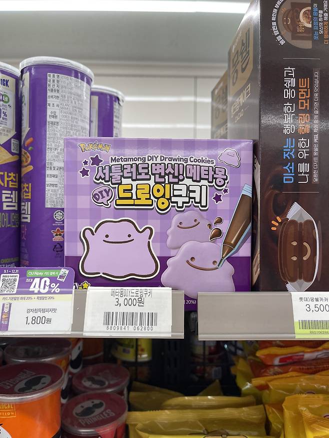 메타몽 캐릭터를 귀엽게 드로잉한 비스킷으로 보는 재미와 먹는 재미를 동시에 주는 쿠키에요.
