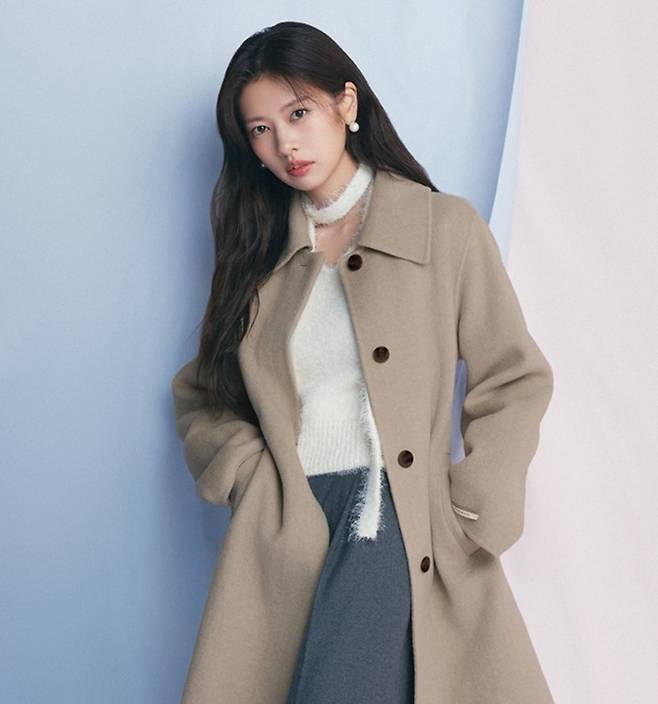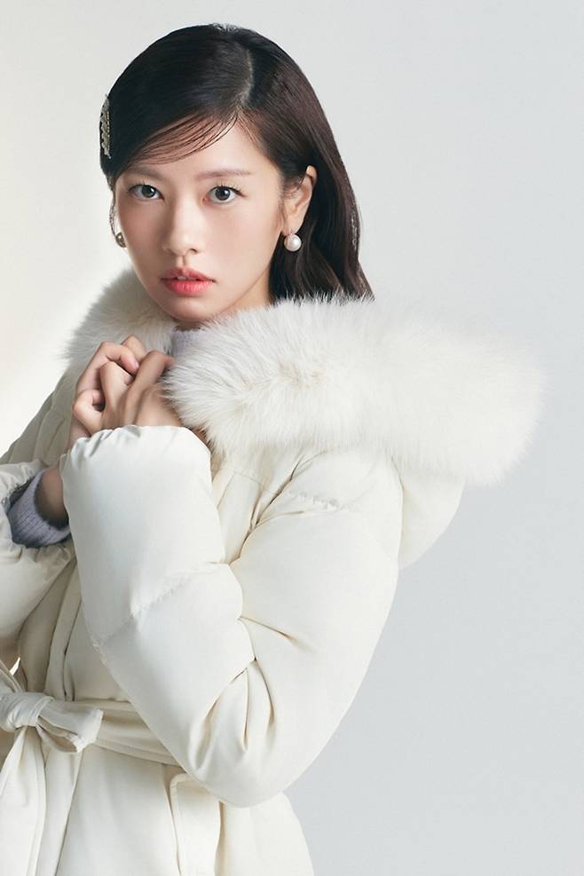 공개된 화보에서 정소민은 울 70%로 제작된 벨티드 맥 코트를 착용해 간결하면서도 우아한 스타일을 연출했다.