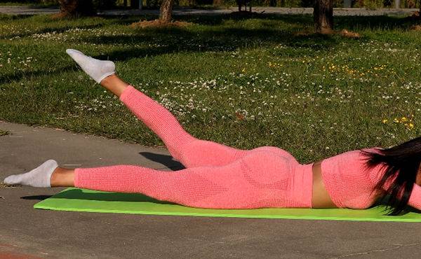 매트에 엎드린 상태에서 팔꿈치를 구부리고 턱 밑에 둡니다. 발끝을 곧게 뻗은 채 다리를 공중으로 띄우세요. 왼발과 오른발을 번갈아 들어 올리며 교차 운동을 이어갑니다.