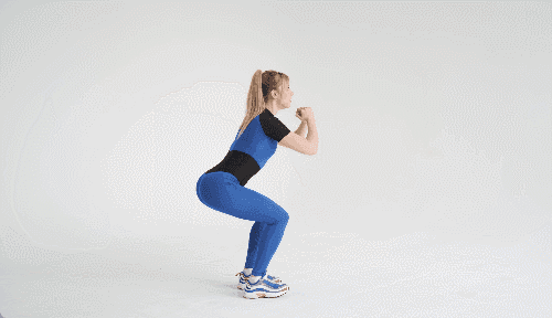 매트 위에 서서 손을 가슴 앞에 모으고 무릎을 굽혀 스쿼트 자세를 만듭니다. 이 상태에서 왼쪽 다리를 뒤로 뻗었다가 원위치로 돌아오고, 이어서 오른쪽 다리를 뒤로 뻗어줍니다.
