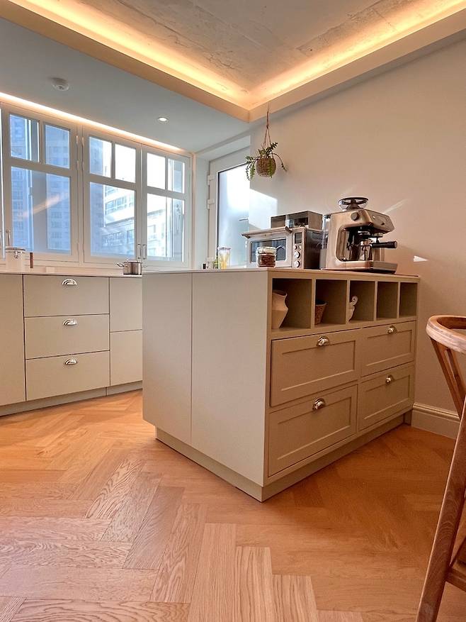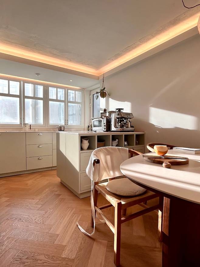 인테리어 업체를 선정하기 전부터 계속 SNS에 다양한 무드의 집, 카페 등 여러 공간을 계속 찾아보며 제가 어떤 분위기를 지겨워하지 않고 지속적으로 좋아하는지 파악해왔어요.