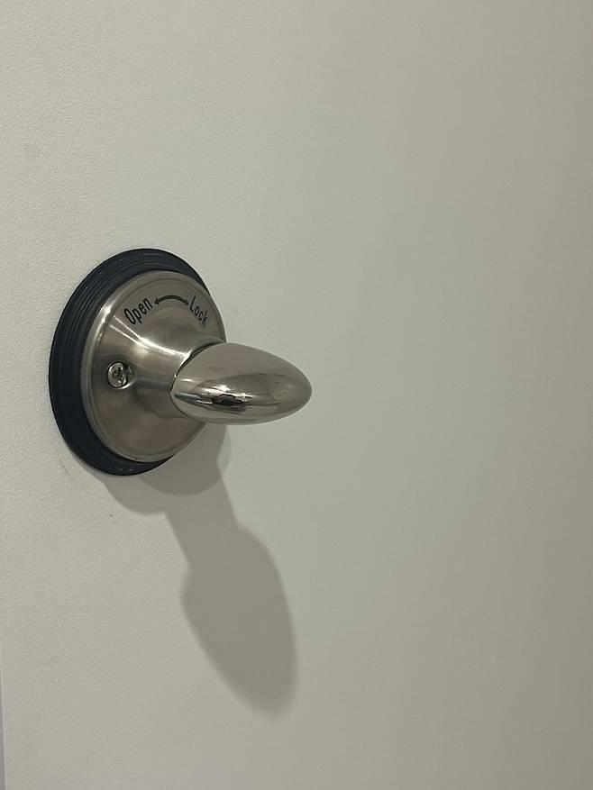 귀여운 화장실 손잡이 앞/뒤에요 :) 실제로 넘버 단추를 눌러 잠금 설정도 가능하답니다. 기능은 있지만 잠금 설정하지 않은 채로 편하게 사용하고 있어요.