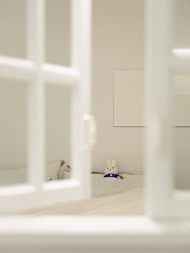 부엌 디자인 창호와 함께 저희 신혼집을 밝게 빛내고 있는 안방 디자인 목창도 자랑거리 중 하나에요. 부엌에서 바라 볼 때도 답답하지 않고 파리 감성 한 스푼 담은 공간으로 탄생되었어요.