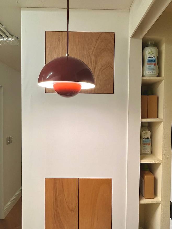 원래는 오픈된 광을 만들었어요, 위에 오브제를 두려고 만들었으나 수납에 목숨 건 신랑이 도어를 달아 수납 공간으로 탈바꿈하여 실속있게 사용 중이랍니다 '-'