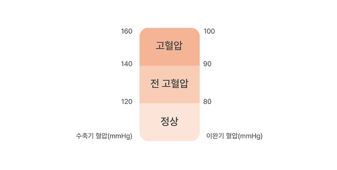 혈액의 압력이 높아지면 신체 장기를 손상시킬 수 있어 적절하게 유지하는 것이 중요해요. 정상 혈압 수치는 이완기 80mmHg 미만, 수축기 120mmHg 미만입니다. 수축기 혈압은 심장이 수축하면서 신체 여러 부위로 혈액을 내보낼 때 혈관이 받는 압력을, 이완기 혈압은 혈액이 다시 심장으로 돌아올 때 가해지는 압력을 뜻합니다.