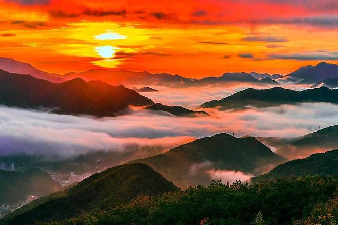 정상인 장군봉(1,567m)에서는 동해와 백두대간 능선이 한눈에 들어오며, 새해 첫 해돋이 명소로도 유명합니다.
