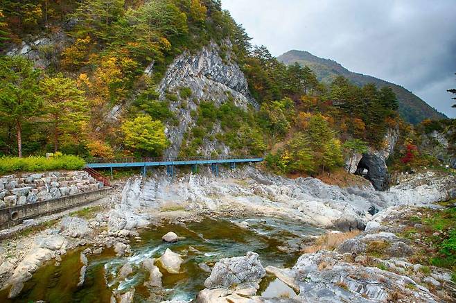 구문소는 낙동강의 발원지 중 하나인 황지천이 암벽을 뚫고 만든 천연 동굴이에요. 거대한 암석에 뚫린 문처럼 보이는 바위틈을 따라 강물이 흐르며, 지질학적으로도 매우 희귀한 ‘하식동굴’ 지형을 관찰할 수 있습니다.