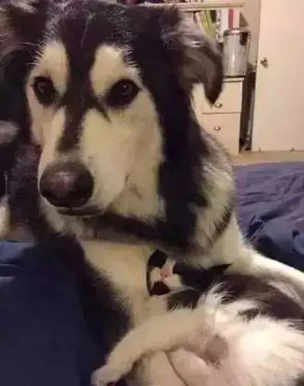 어느 날, 산책을 나갔던 허스키 한 마리가 조그만 길고양이 친구를 데리고 집으로 돌아왔습니다. 이 모습을 처음 본 주인은 종을 뛰어넘은 따뜻한 우정의 시작이라고 생각하며 흐뭇하게 미소 지었습니다.