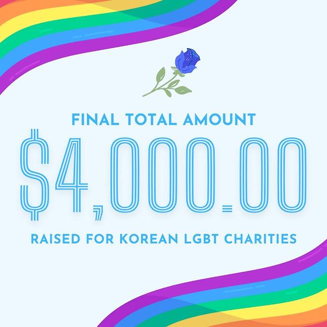 | ▲ 제로베이스원의 국제 성소수자 팬덤인 레인보우 제로즈가 한국 성소수자 인권단체 후원하기 위한 기부금 모금 행사로 모인 금액을 발표하는 SNS 이미지 |