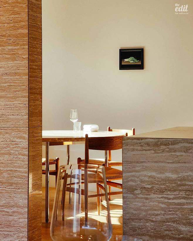 1층은 모두 키친으로 사용되고, 2층이 다이닝 홀이야. 햇살이 가득 들어오는 2층 공간은 3개의 테이블과 하나의 룸으로 이루어져 있어. 담백한 멋이 느껴지는 건축 요소들과 갤러리를 연상시키는 인테리어가 마음을 사로잡아.