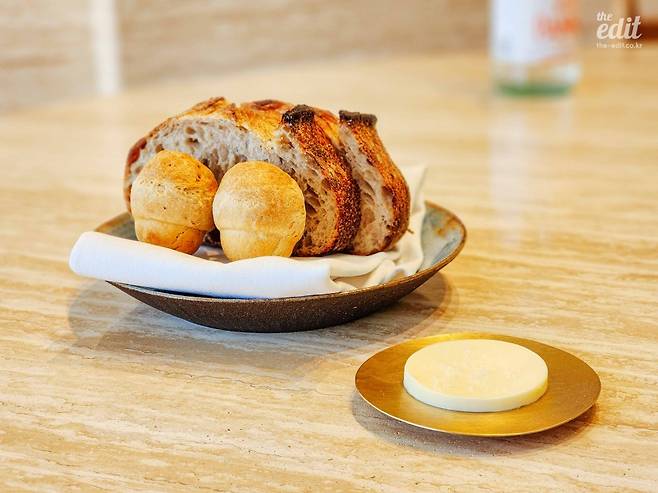 사워도우와 구제르(Gougère)가 나오는데 이 두 가지만 해도 맛있는 와인 안주. 특히 갓 구워낸 구제르의 포슬한 질감과 짭조름한 여운이 훌륭했어.