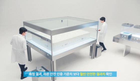 에이스침대가 운영하는 라돈 측정실의 검사 장면을 공개했다. 에이스침대는 공기보다 7배 이상 무거워 가라앉는 라돈 특성까지 고려해 매트리스 상·하단 농도를 모두 측정한다. 자체 검사 설비를 갖춰 고객이 원하면 365일 언제나 검사가 가능하다.