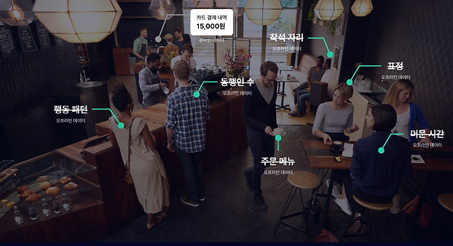 카페도 결국 ‘공간’이었다. 무대를 넓혀 공간 전반을 아우르기로 했다. “오프라인 데이터의 활용성은 무궁무진합니다. 빅데이터 시장이 폭발적으로 성장했지만 온라인 데이터에 국한된다는 한계점이 있었어요. 물론 온라인 데이터도 중요하지만 현장감이 떨어집니다. 예컨대, 카드로 식사비를 결제했을 경우 온라인 데이터로는 카드 번호와 상호명, 금액, 결제시간까지는 알 수 있지만 해당 결제건의 성비와 구체적인 메뉴, 체류 시간 같은 정보는 알 수 없어요.”