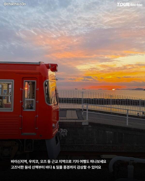 우치코, 오즈, 시모나다 등 근교 지역으로 기차를 타고 여행할 수 있습니다. 고즈넉한 분위기 속에서 동네를 산책하거나 일몰이 저무는 바다 풍경을 감상하기 좋습니다.