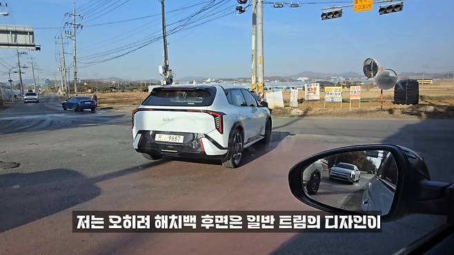 측면부에서 EV4 해치백 모델의 진가가 발휘된다. 세단 모델이 후방으로 길게 뻗은 형태를 보이는 반면, 해치백은 뒷부분이 둥글게 처리되어 전체적인 비율이 더욱 균형감 있게 완성됐다. 특히 C필러에 적용된 독특한 디자인 요소는 루프를 가로질러 반대편까지 이어지며 차별화된 스타일을 연출한다.