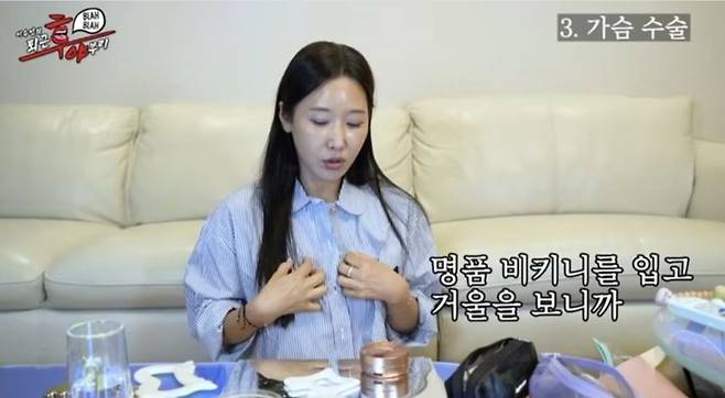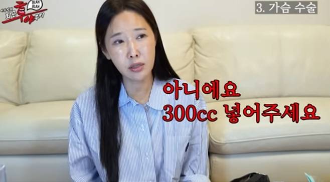 이수진은 “손바닥만 한 명품 비키니를 입고 거울을 봤다가 허전해 보여 가슴 성형을 결심했다”라며 270cc보다는 300cc를 선택해 만족스러운 결과를 얻었다고 전했습니다.