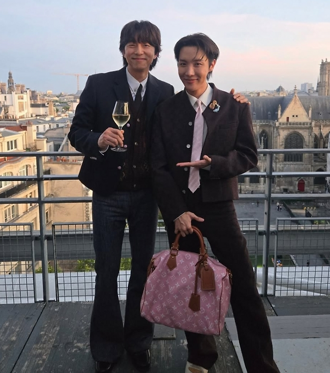 그룹 방탄소년단(BTS) 제이홉과 배우 공유가 프랑스 파리에서 열린 루이비통 패션쇼에서 만났다.