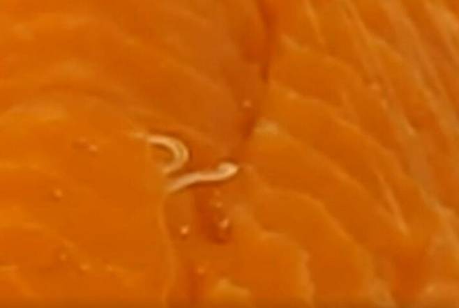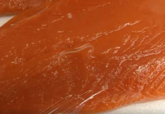 연어의 속살을 자세히 관찰하면 실같은 벌레가 꿈틀거리고 있는걸 발견할 수 있습니다. 벌레의 정체는 '고래회충'이라고 하는데요.