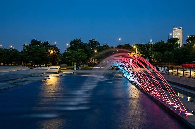 해가 지면 물속 바닥에 설치한 야간 조명이 켜져 마치 밤하늘의 별빛을 비추는 듯한 분위기를 선사합니다. 여름철의 무더운 열기를 식혀주는 이곳은 가족, 친구, 연인과 함께 방문하면 최고의 휴양지가 되어줄 것입니다.