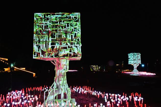 대형 빔 프로젝터와 레이저가 투사하는 영상은 가을밤을 환상적으로 물들인다.