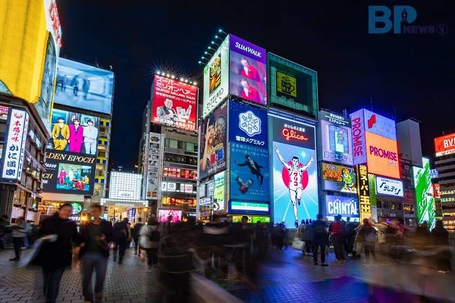 오사카는 현란한 네온 사인이 가득한 상점 거리에서부터 관광객을 태우고 지나가는 도톤보리 크루즈선 등이 있는 세계적인 관광명소다.