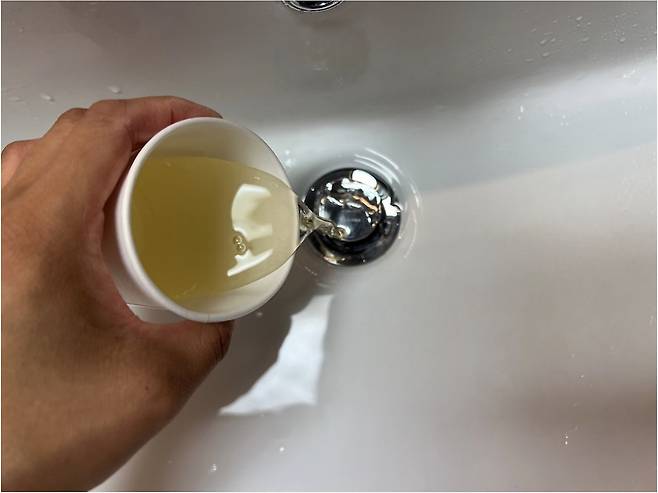 끓인 물은 빠르게 흘려버리지 말고 천천히 흘려보내주세요