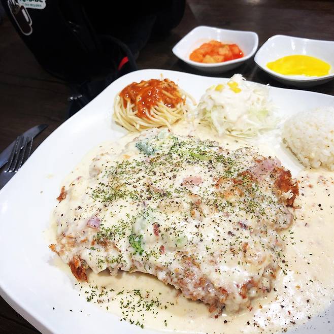 ✔메뉴: 까르보돈까스 12,000원, 칠리마늘돈까스 12,000원