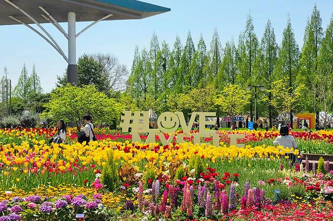 가장 먼저 눈길을 사로잡는 곳은 형형색색 튤립이 펼쳐진 튤립정원이다. 이곳은 봄꽃의 시작을 알리는 화려한 무대이자, 박람회의 분위기를 가장 먼저 띄우는 곳이다.