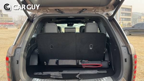신장 178cm의 기자가 앉았을 때 헤드룸은 손바닥 하나 정도 여유뿐이다. 성인이 탑승한다면 장거리보다는 한 두 시간 주행에 어울릴 공간 구성이다. 3열에 처음 적용한 전동식 등받이 리클라이닝과 시트 앞뒤 이동은 칭찬해주고 싶은 부분이다. 3열 탑승객의 피로를 덜어준다.