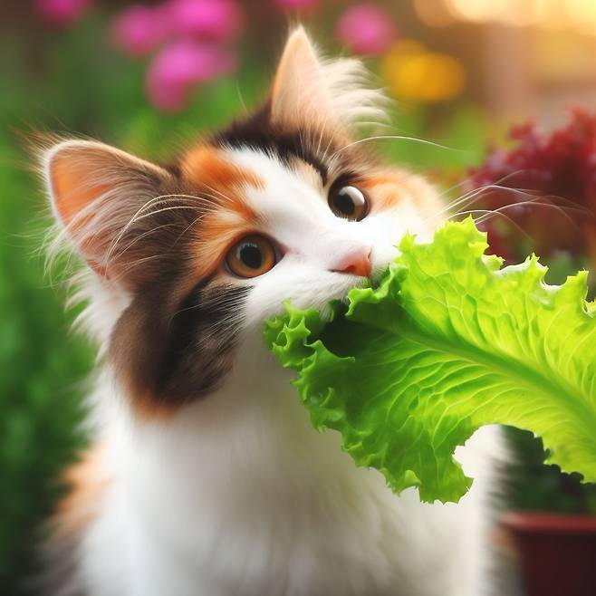 고양이 상추 급여 시 뜯어먹는 재미 느낄 수 있어
