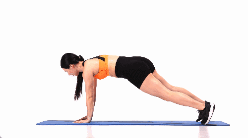 매트에 플랭크 기본자세로 엎드려 몸을 곧게 유지합니다. 오른손으로 체중을 지탱하면서 왼손을 공중으로 들어 올리고 상체를 틀어줍니다. 다시 원래 자세로 돌아온 뒤, 이번에는 왼손으로 버티면서 오른손을 들어 상체를 틀어줍니다.