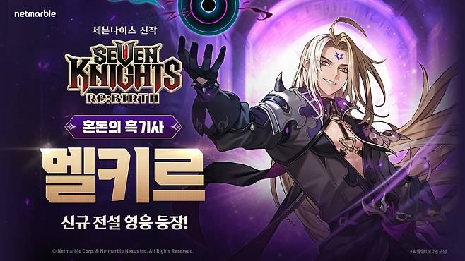 전설 등급 딜러 ‘혼돈의 흑기사 멜키르’는 아군에 마법형 영웅이 3명 이상 있을 경우 각 공격마다 대상 최대 생명력의 일정 비율만큼 피해를 입히는 고유 스킬 효과 ‘마력 역류’를 비롯해 1회 피해량을 제한하고 모든 적군의 효과 저항을 감소시키는 능력을 보유했다.
