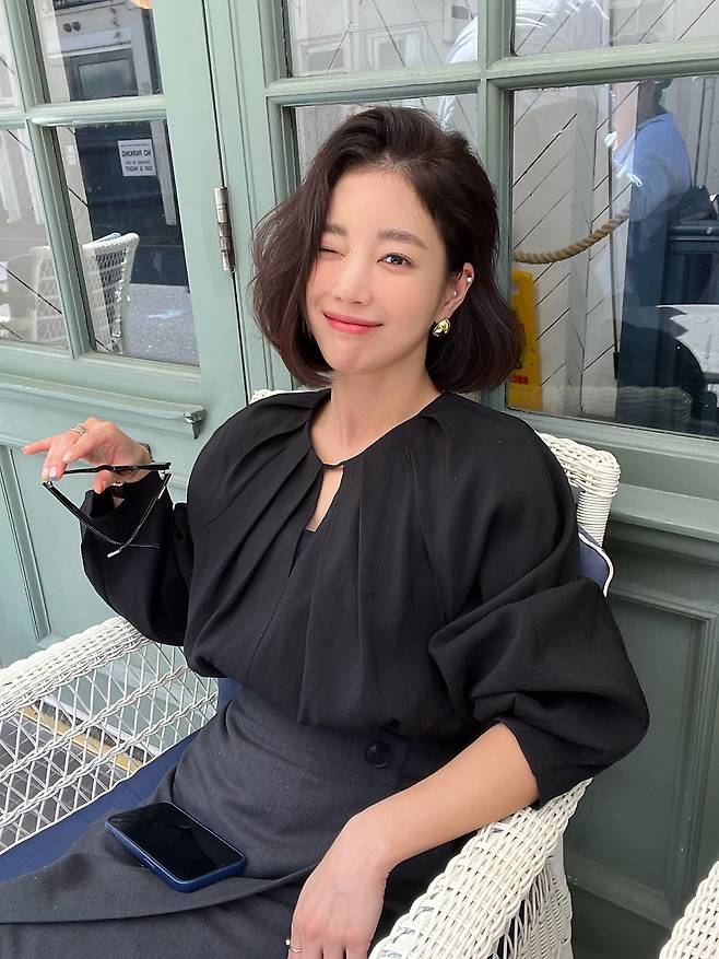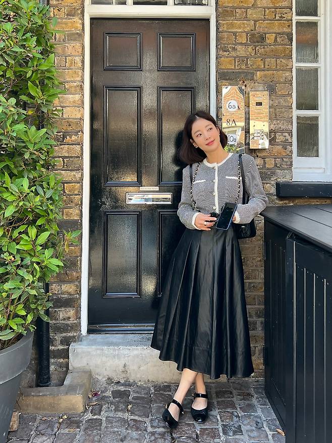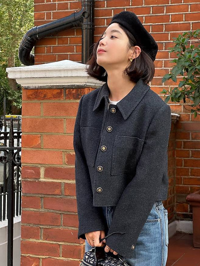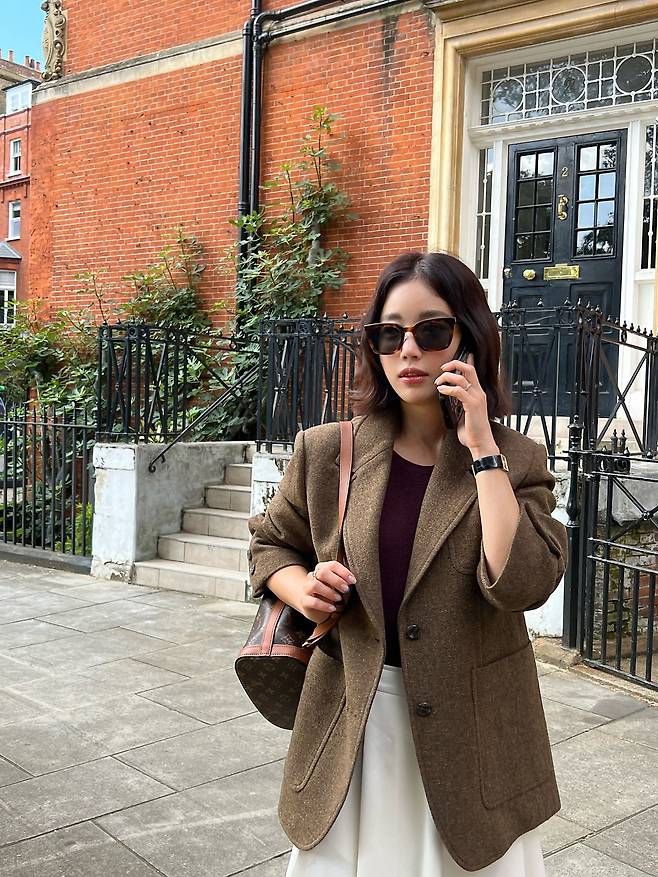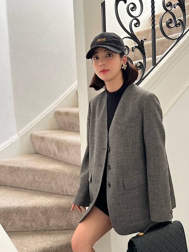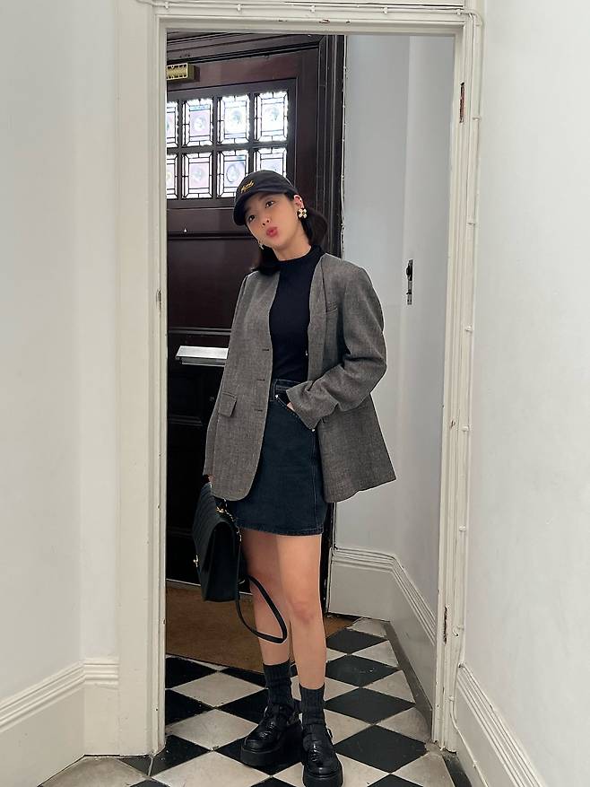 기은세는 클래식한 감성의 그레이 자켓과
