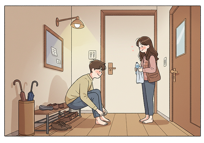 · 퇴근 후 집에 돌아오면 밝게 “왔어요?” 인사하기