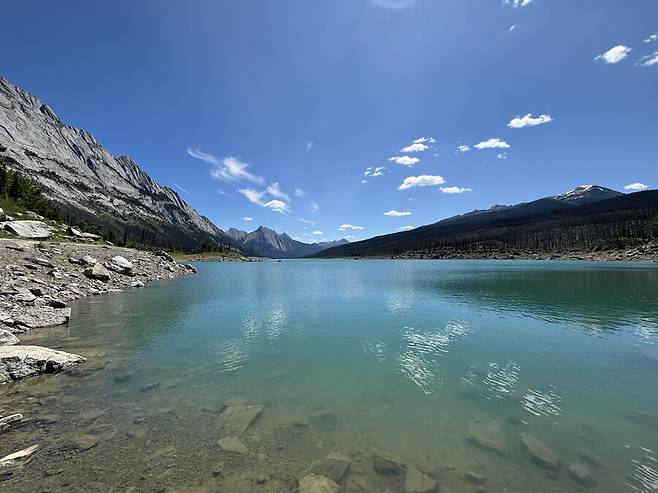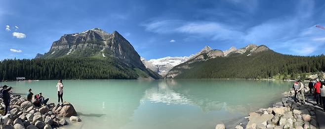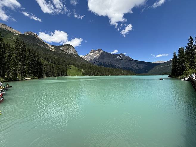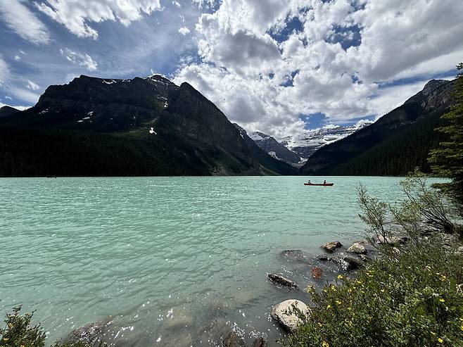 캐나다 로키 산맥와서 처음 본 호수인데 처음이라 너무 감명이 깊었는데