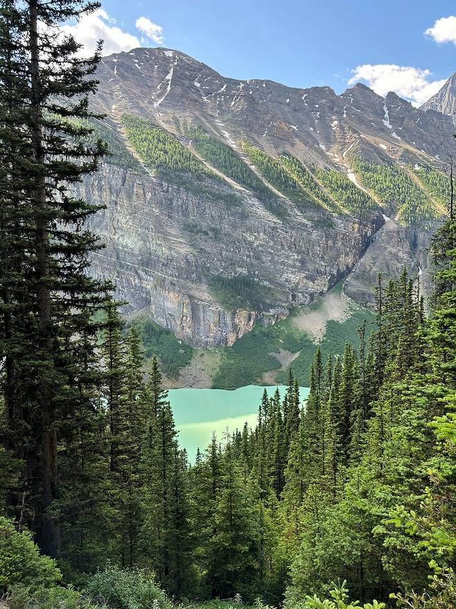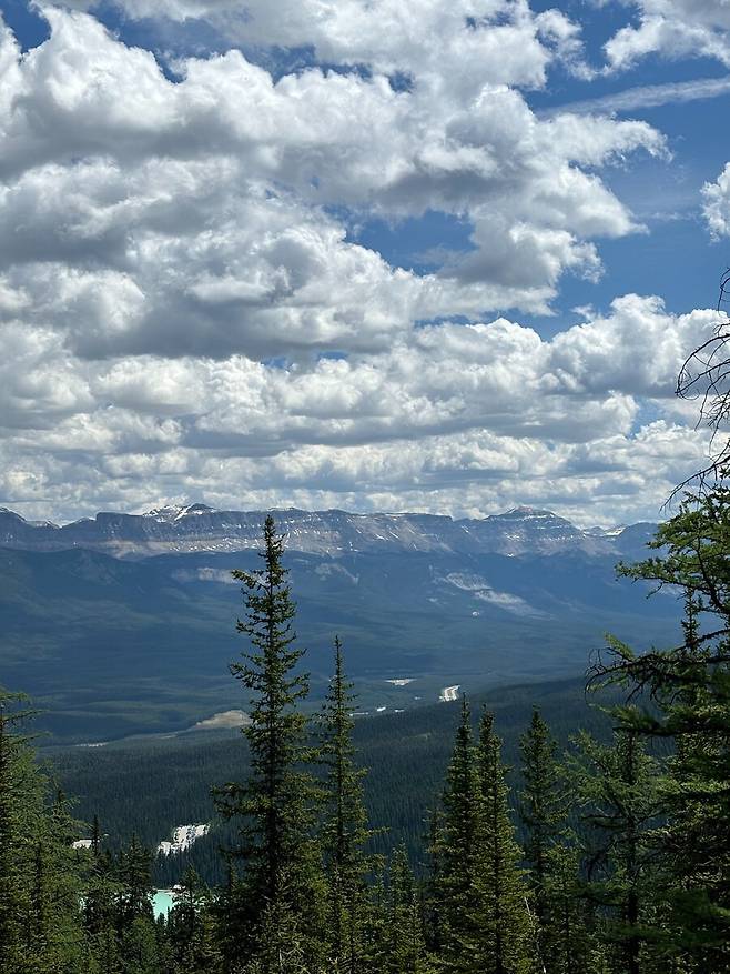 정상에서 본 레이크 루이스.. 사실 나무때문에 잘 안보임
