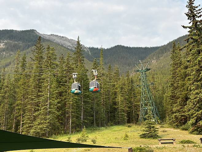 밴프에서 케이블 카 타고 올라갑니다..