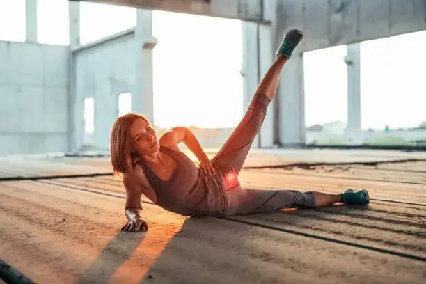 사이드 레그 리프트는 옆구리와 하복부를 강화하는 운동입니다. 옆으로 누운 상태에서 다리를 곧게 펴고 위쪽 다리를 천천히 들어올렸다가 내립니다. 이 운동은 옆구리의 지방을 줄이는 데 도움을 줄 수 있으며, 전반적인 복부 근육 강화에도 기여합니다.