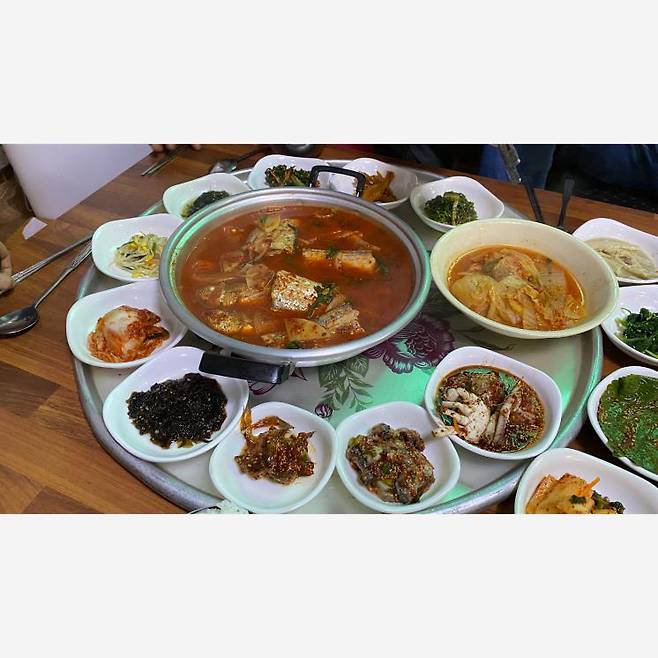 부산에서 푸짐한 찌개백반 집을 찾고 있다면 바로 이곳이다. 이미 소문 난 맛집으로 부산 현지인, 여행자 할 것 없이 발길이 끊이지 않는 곳이라고. 2층으로 쌓여 오는 반찬 쟁반 비주얼부터 압도되는 기분. 분홍 소시지, 도시락 돈까스 등 추억의 맛을 느낄 수 있는 반찬이 가득하다. 김치찌개, 된장찌개, 동태탕, 순두부찌개 등 여러 찌개가 준비되어 있으니 취향껏 골라보자. 식사를 마치고 나면 직접 담근 식혜를 후식으로 주는데 이 모든 걸 만원에 먹어도 되는지 의문이 들 정도로 인심이 넉넉한 집이다.